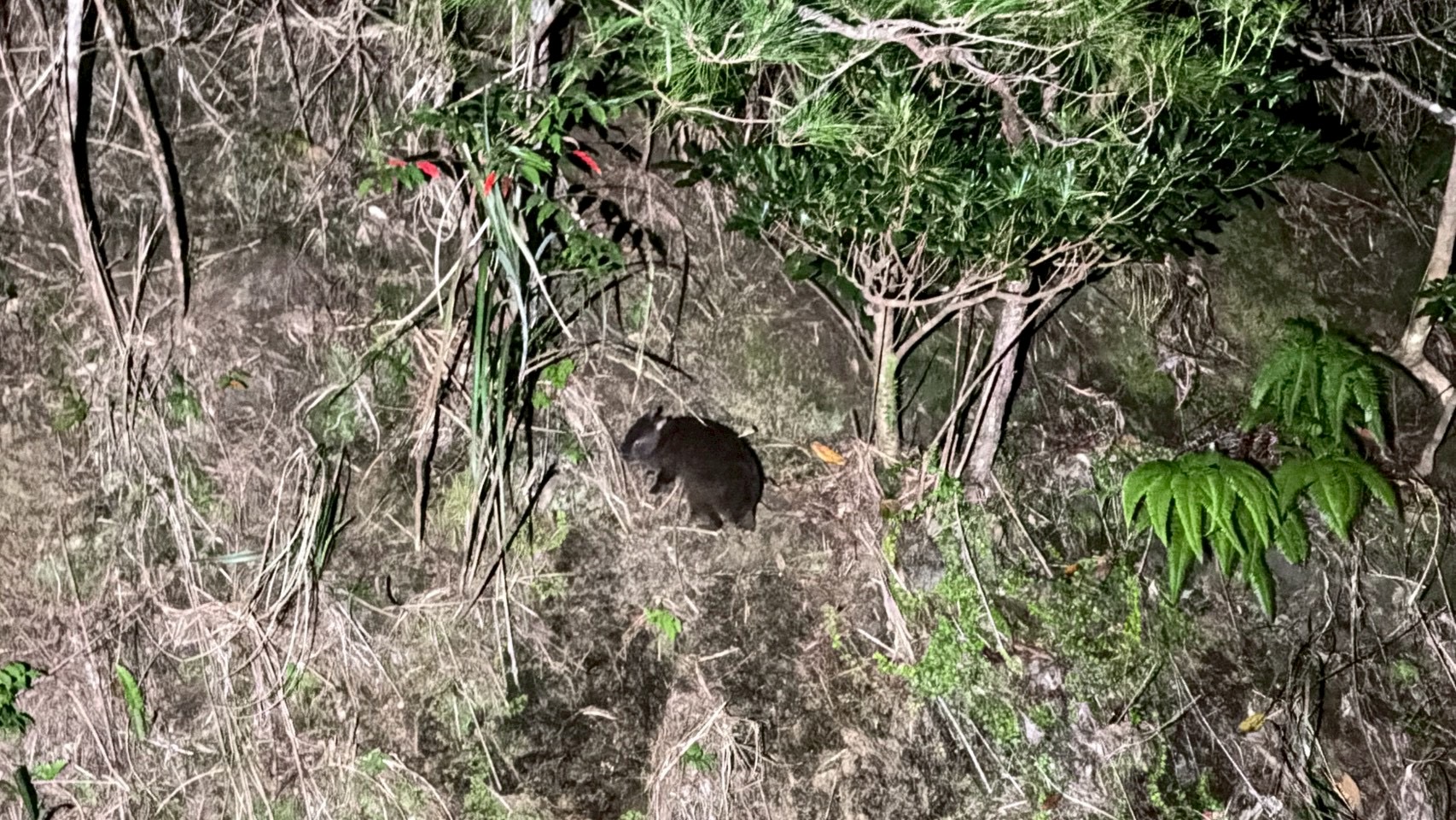 夜にはナイトツアーで幻のアマミノクロウサギを探しに行きました。「山の斜面になっているところにいるよ」と同行していたガイドの方が言っていたのでそこを探した結果、行きは見つからずみんな諦めかけていましたが、帰り道に斜面にいたアマミノクロウサギを見つけることが出来ました。思っていたより、本州のウサギとは違い、足はあまり速くなく、小さくてとても可愛いかったです。