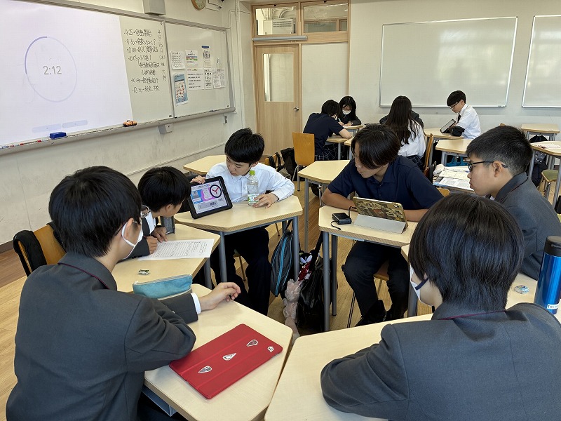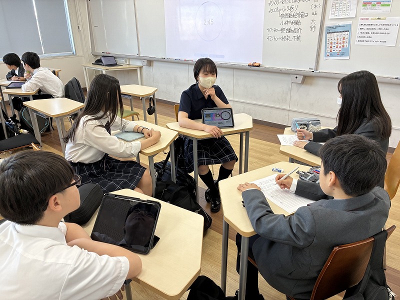 中学校の特色あるプログラムの一つ、クロスカリキュラム。今回は在校生が取り組んで来たクロスカリキュラムとはどんなものなのか?どういうことをしているのか?など、具体的な取り組みをプレゼンしてもらい、新入生がポイントをメモして今後に生かす時間を過ごしました。