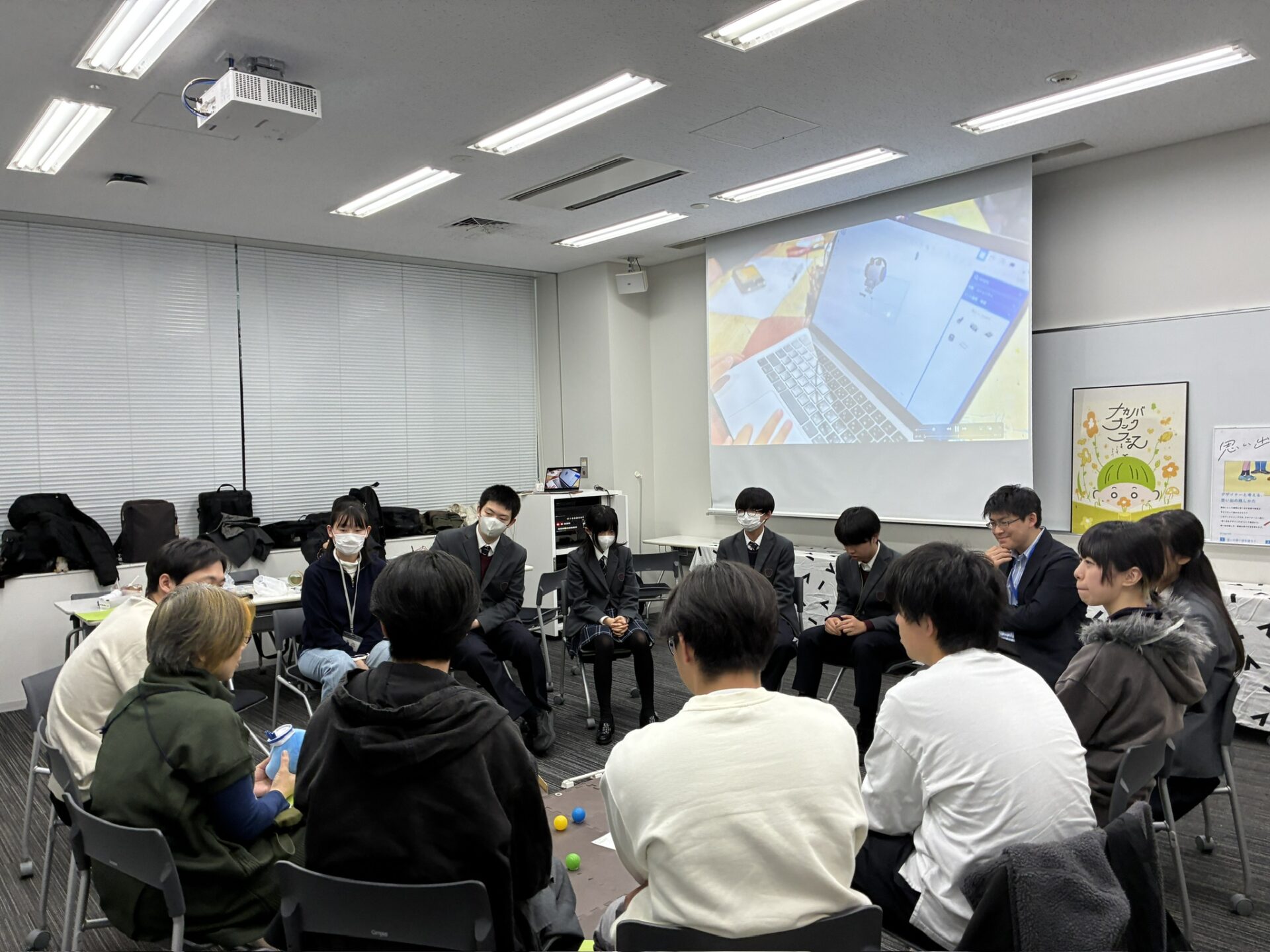 様々な出展が行われているなか、午前中には、哲学ラボの普段の活動の1つである、哲学対話に取り組みました。「答えを急がず、話しても、黙っていてもいい」という場の中で、生徒たちは、多様な背景を抱えた研究者や実践者の考えに触発され、自身の未言語化な感覚や違和感と向き合っていました。他者の言葉で思考が揺さぶられ、深まっていく様子が随所に見られました。