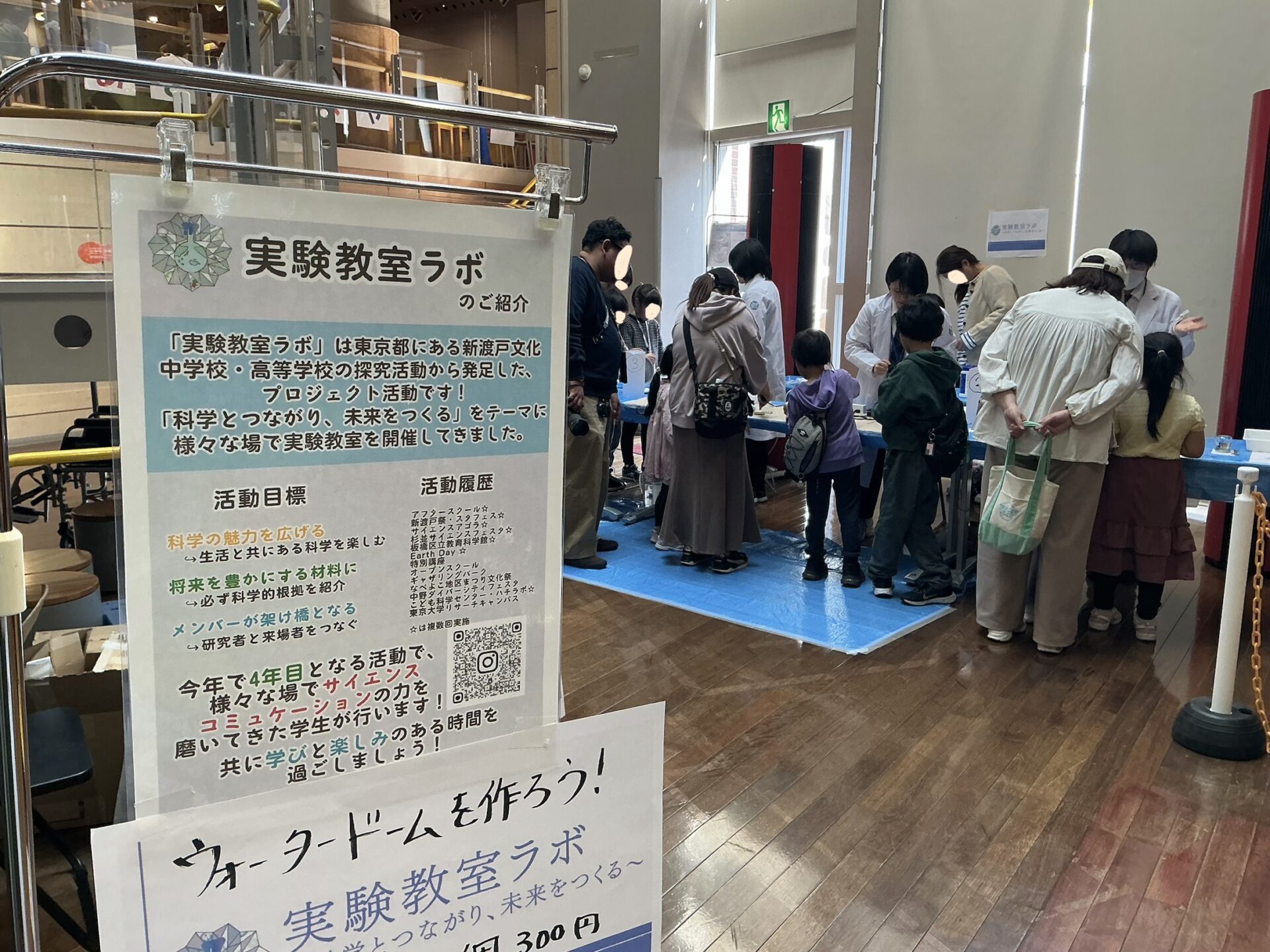 実験教室ラボはこの科学館の一角をお借りして「実験ラボ ウォータードームを作ろう!」と称して実験教室を開催いたしました。