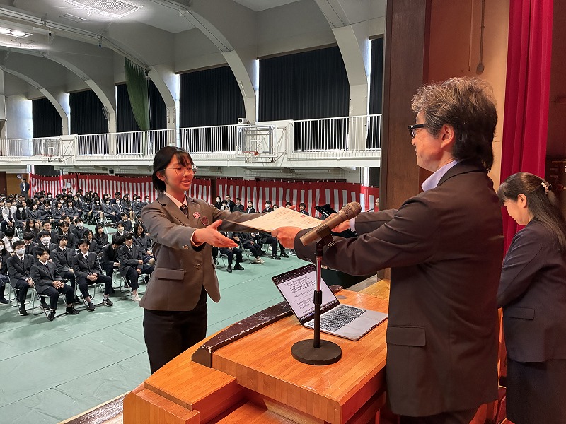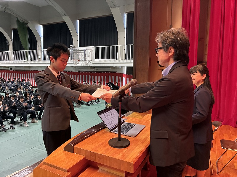 始業式後は生徒の表彰が行われました。校長先生のお話にもありましたが、引き続き多くの生徒が外部との関わりを持ち、自分や自分たちのスキルアップを目指して取り組んでいることを共有しました。