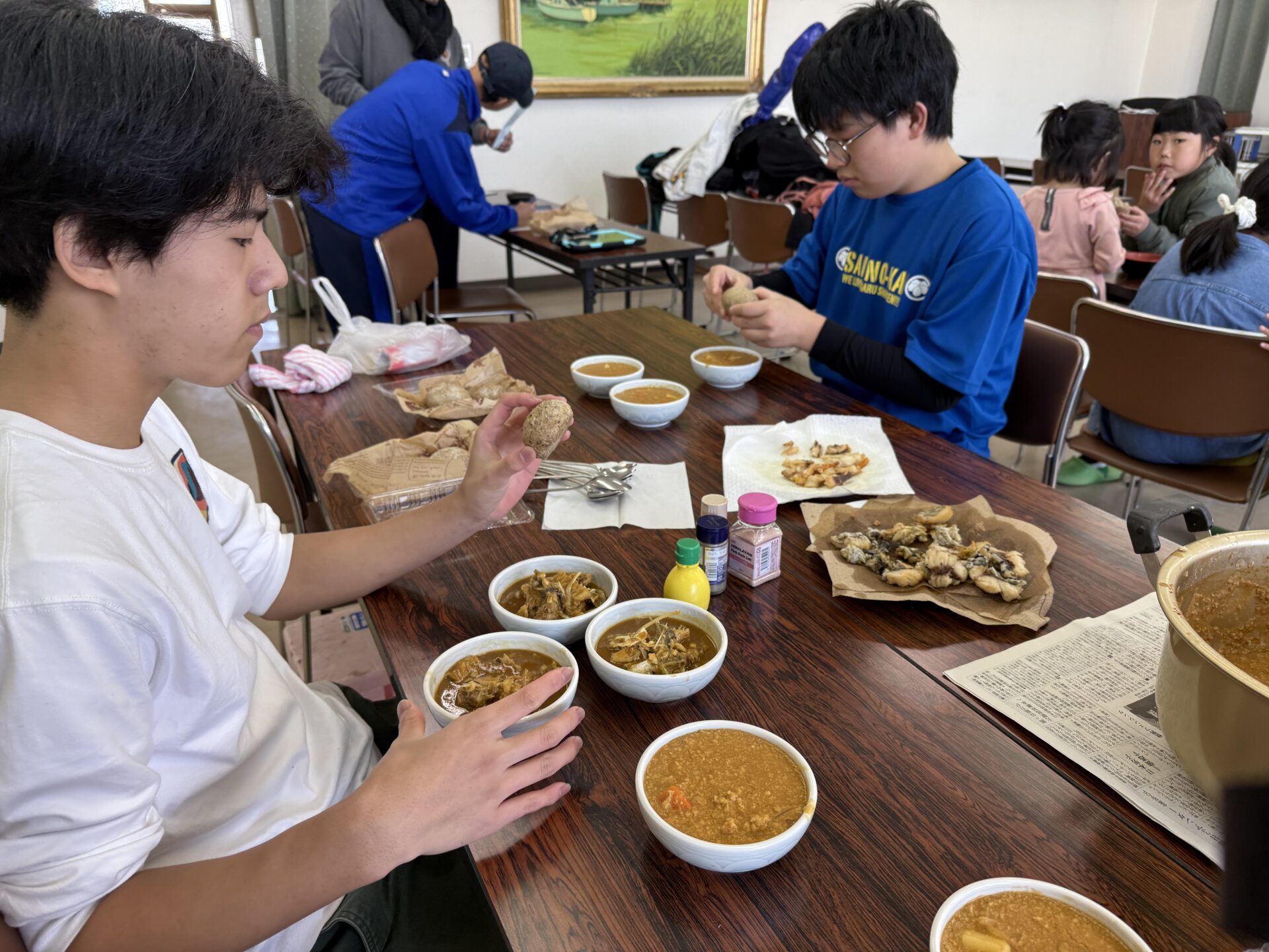 この滋賀スタディツアーでは、生徒たちは沖島で開催された「おきしまるしぇ」に参加し、琵琶湖の環境問題の象徴でもあるニゴイやブラックバスといった「未利用魚」を使ったバーガー販売のお手伝いをしました。自分たちでレシピを検討する段階から協働し、実際に地域の方々へ販売することで、座学では得られないリアルな地域課題に触れることができました。また、現地の中学生が案内役となってくださり、日本で初めての養鱒場を見学するなど、地域に根差した取り組みを肌で感じることができました。